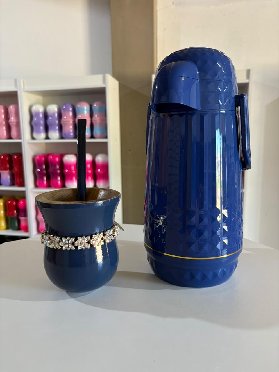 kit termica valentina (azul marinho) cuia/bomba/choker